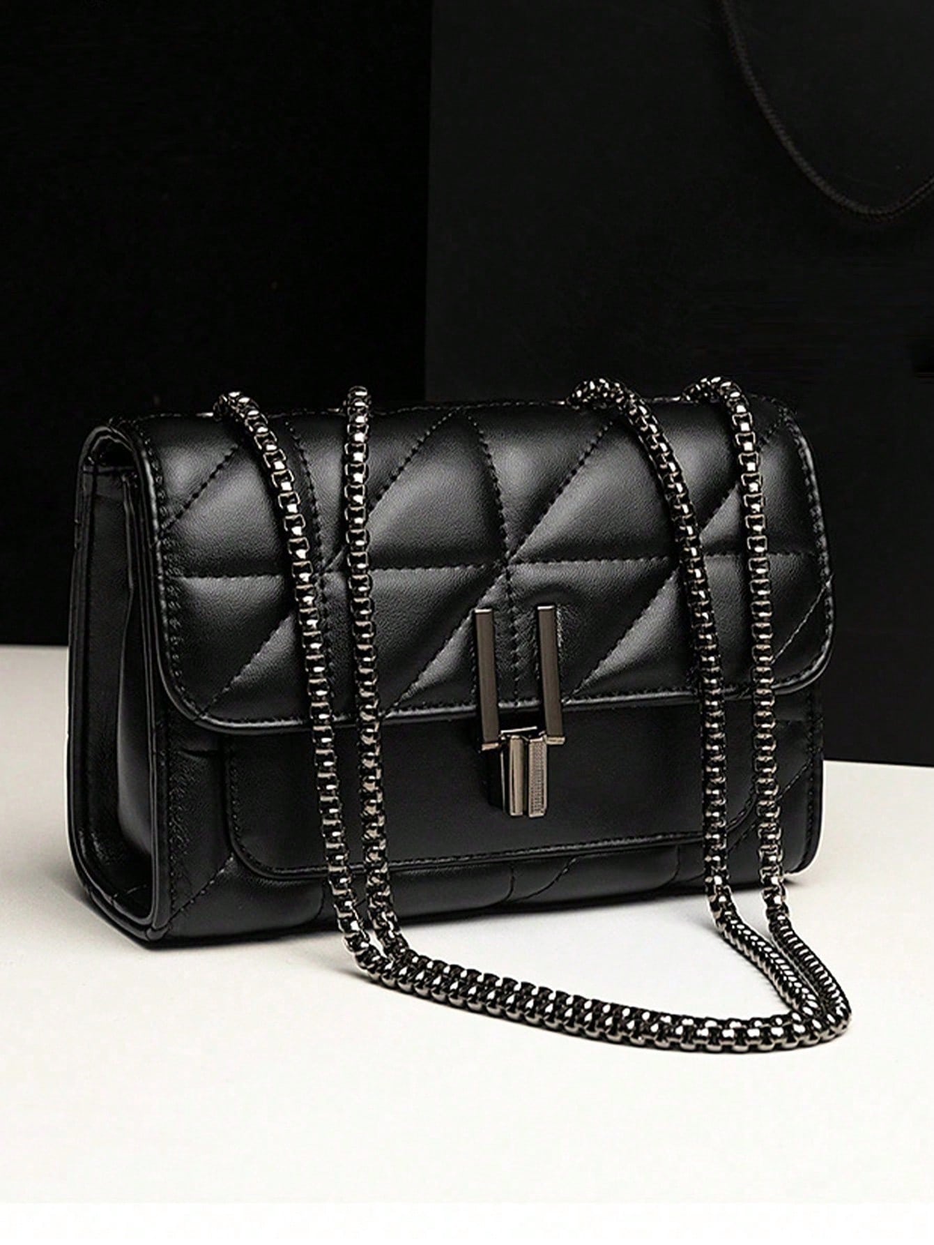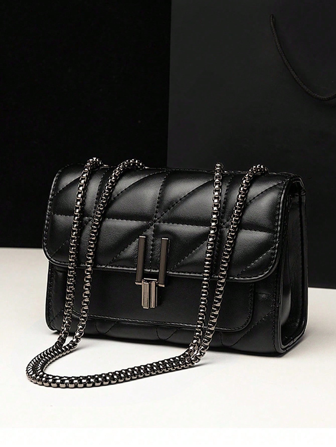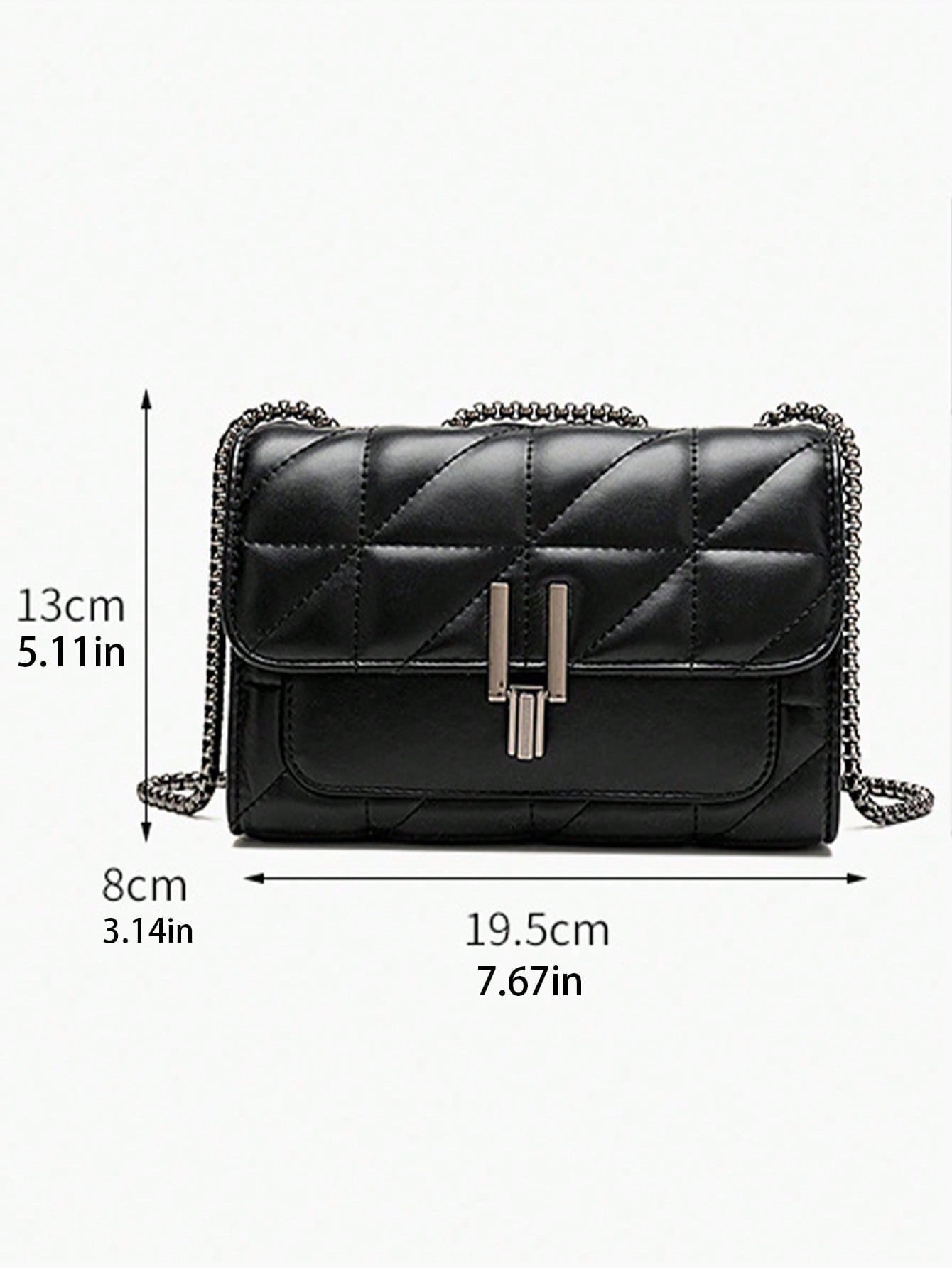 حقيبة كتف أنيقة للنساء مع سير سلسلة، حقيبة جلد صناعي مكعبة مبطنة، حقيبة فاخرة وبسيطة للذراع