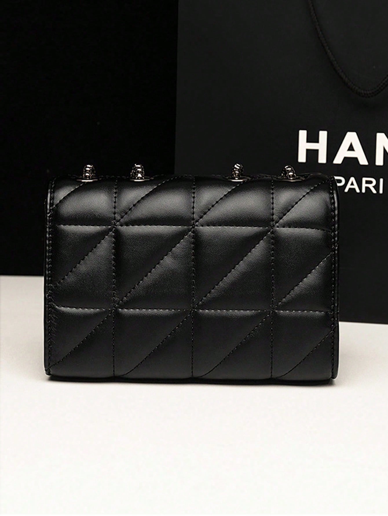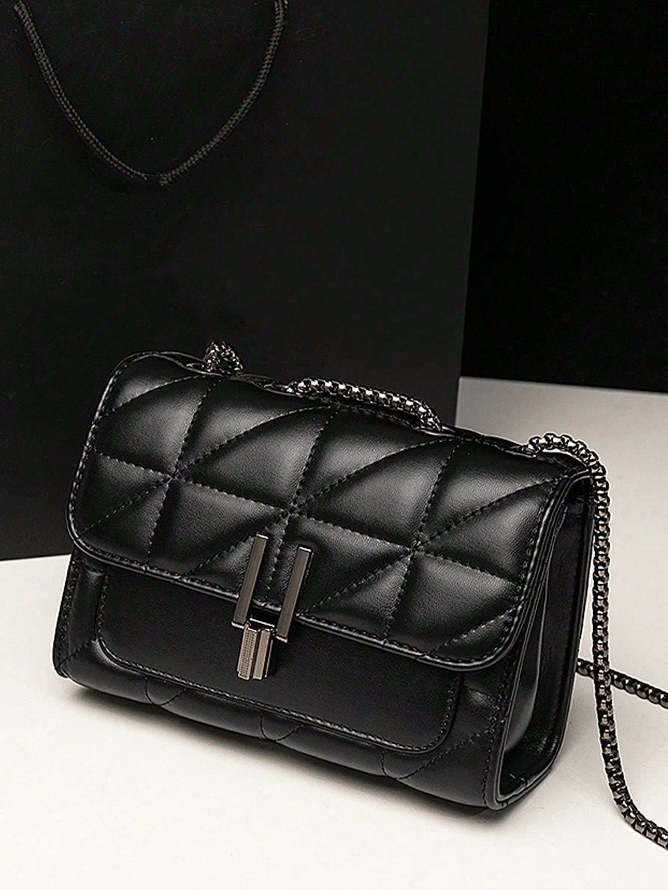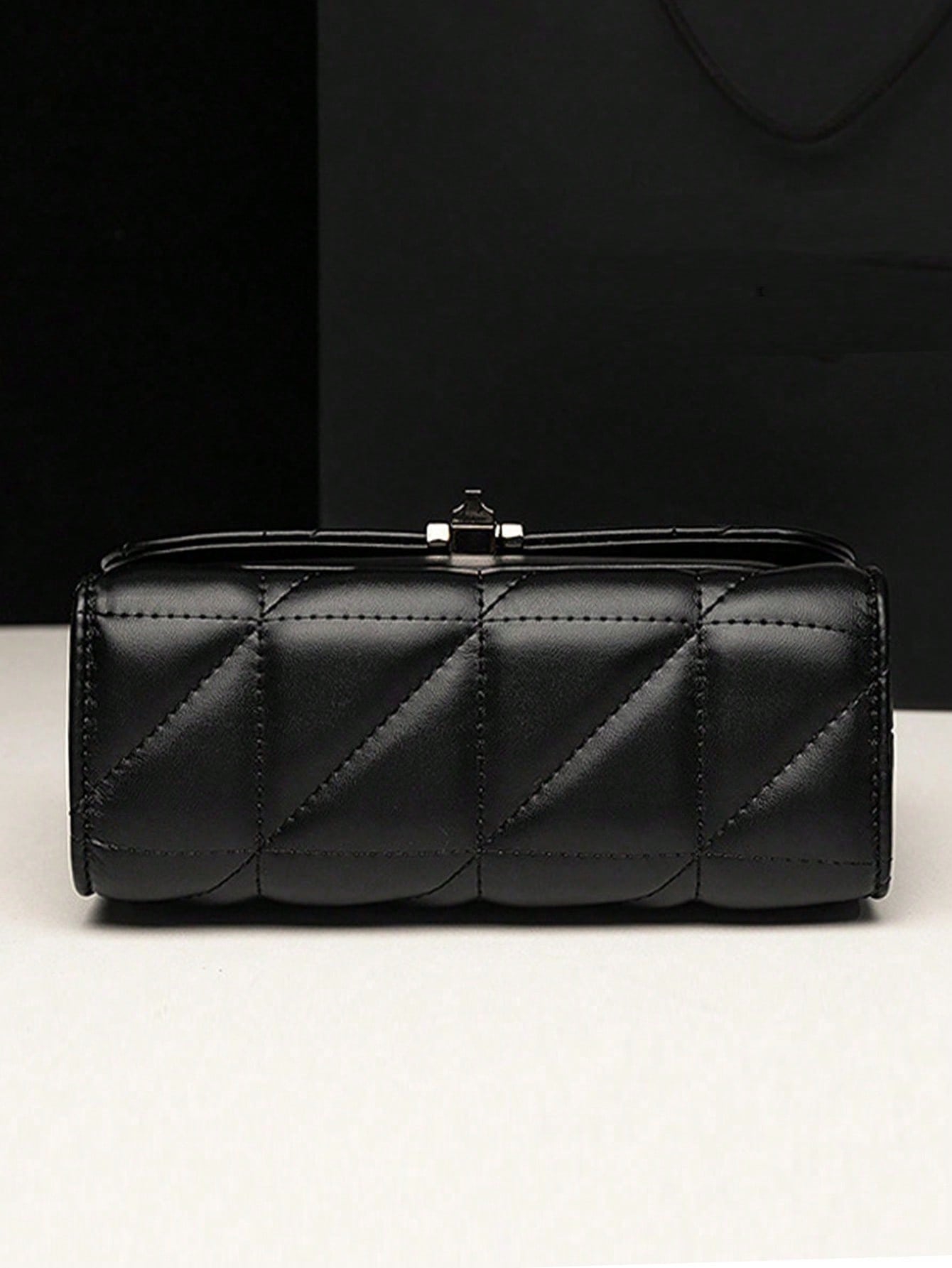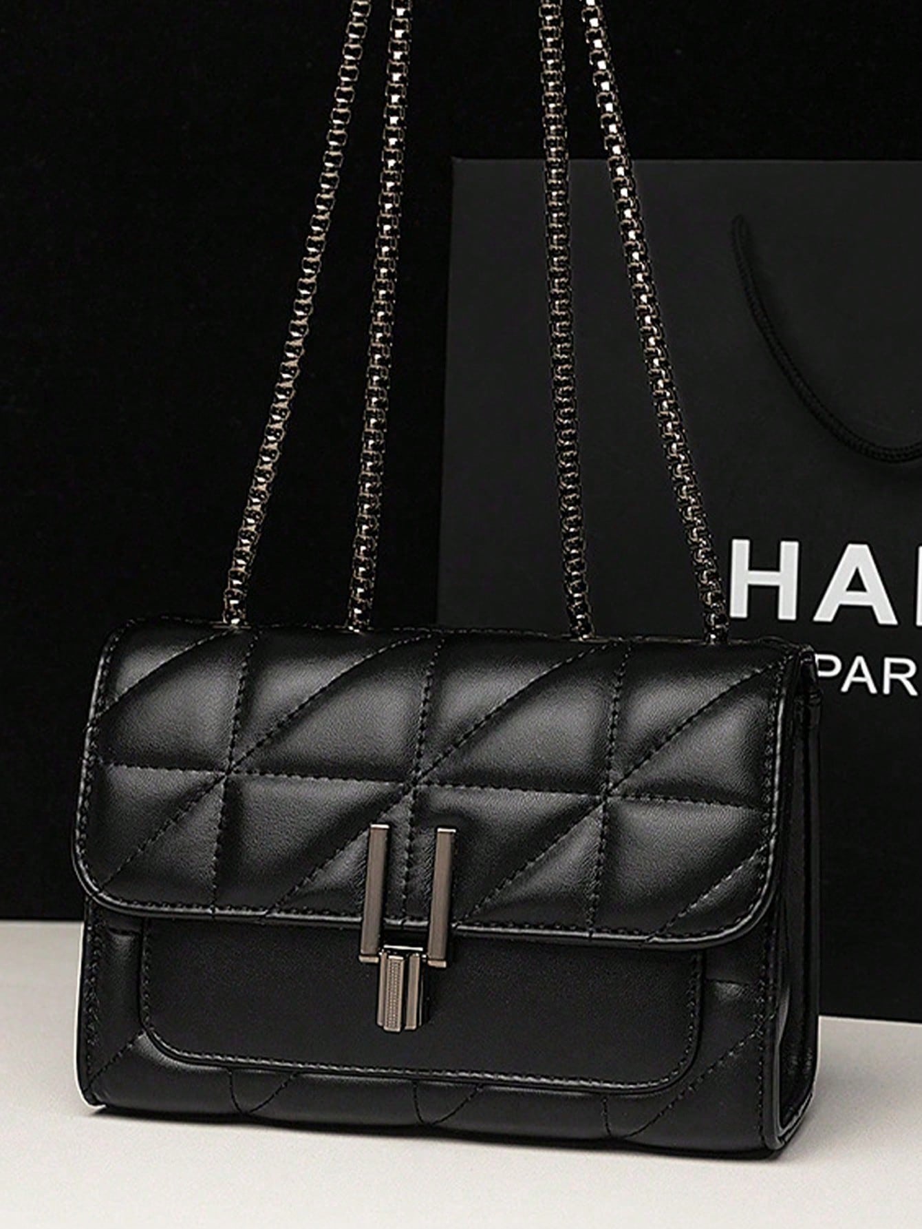 حقيبة كتف أنيقة للنساء مع سير سلسلة، حقيبة جلد صناعي مكعبة مبطنة، حقيبة فاخرة وبسيطة للذراع