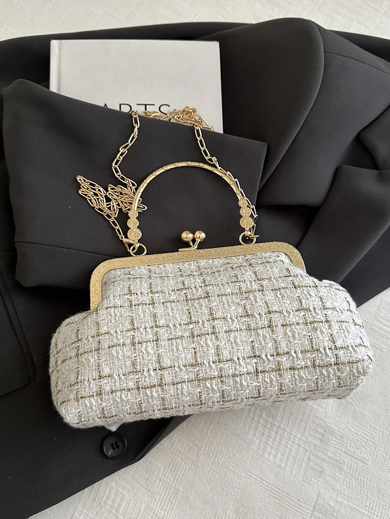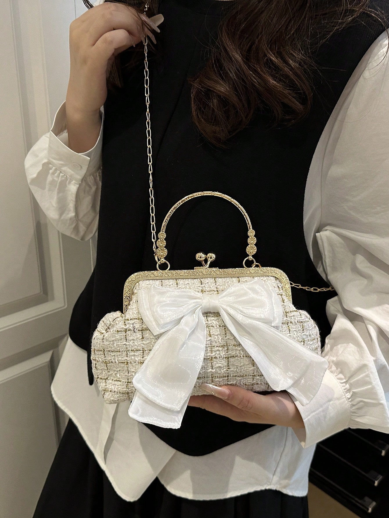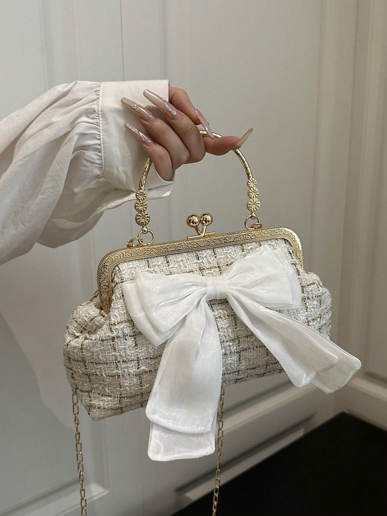- مقبض السلسلة المعدنية يزيد من أناقة التصميم ويمنح الحقيبة لمسة فاخرة.