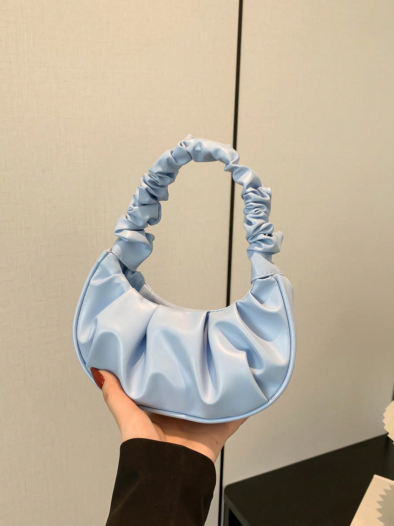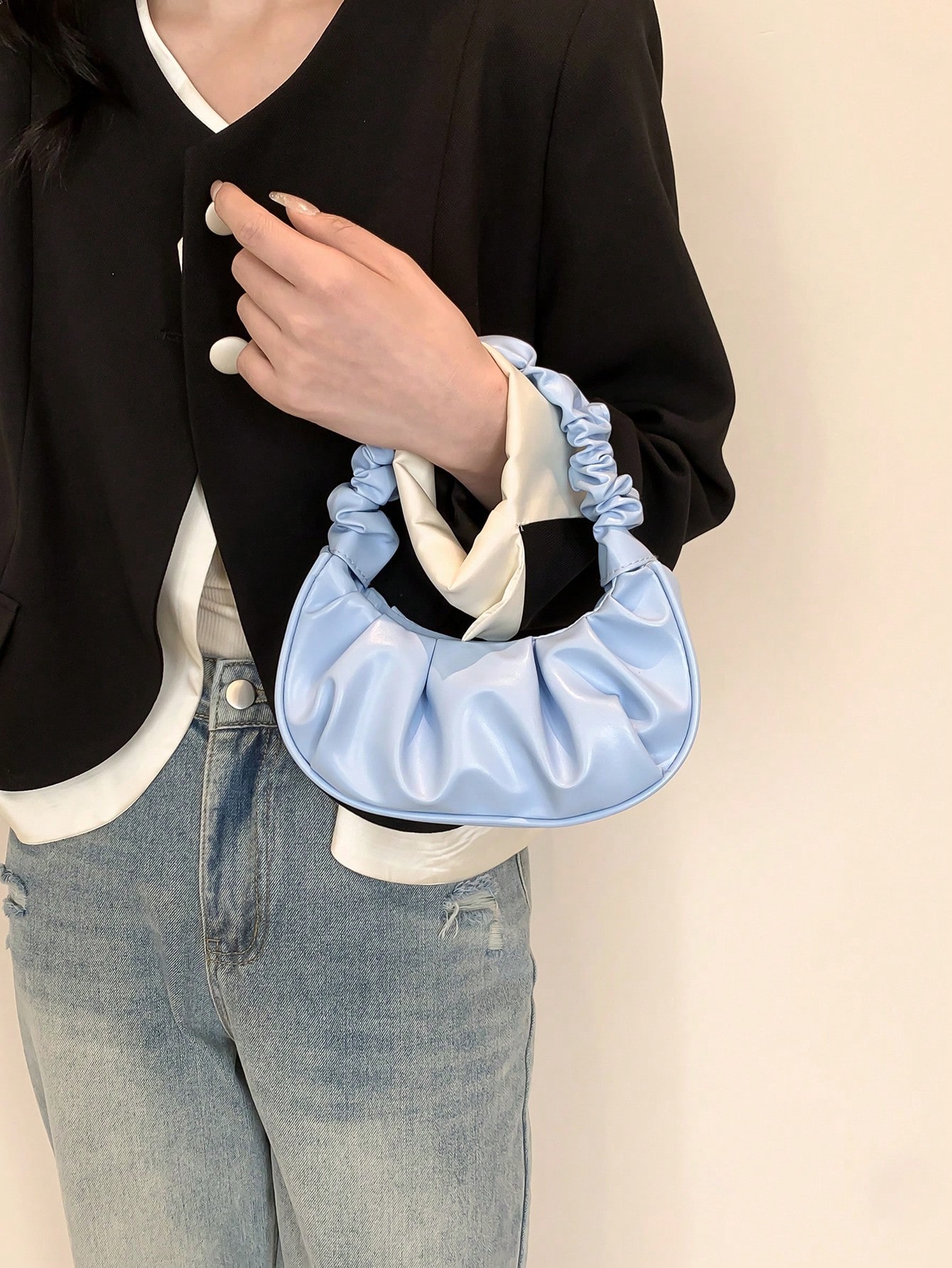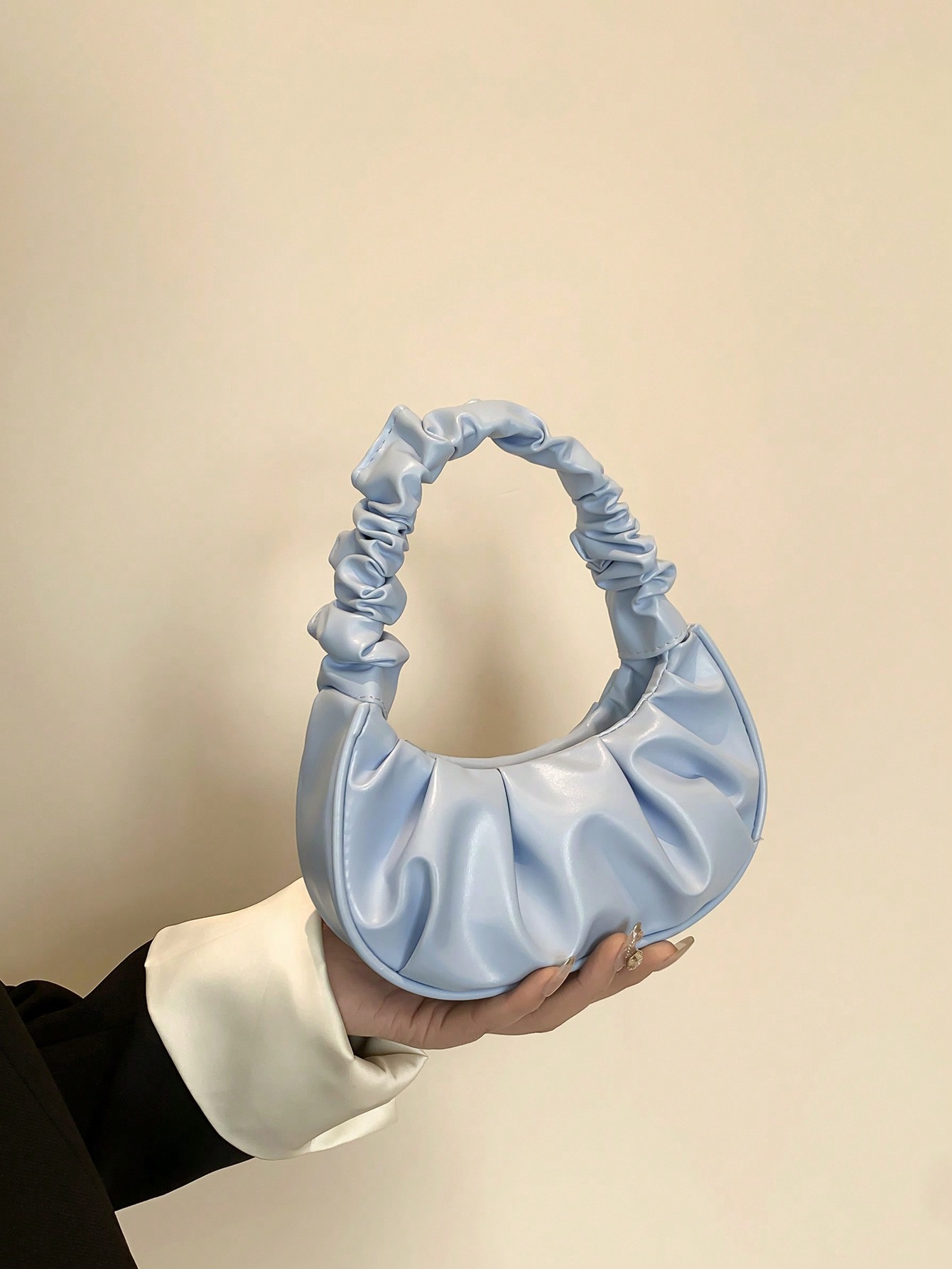 • حقيبة نسائية عصرية بلون أزرق باستيلي ناعم، بتصميم مميز بمقبض مطوي أنيق.
