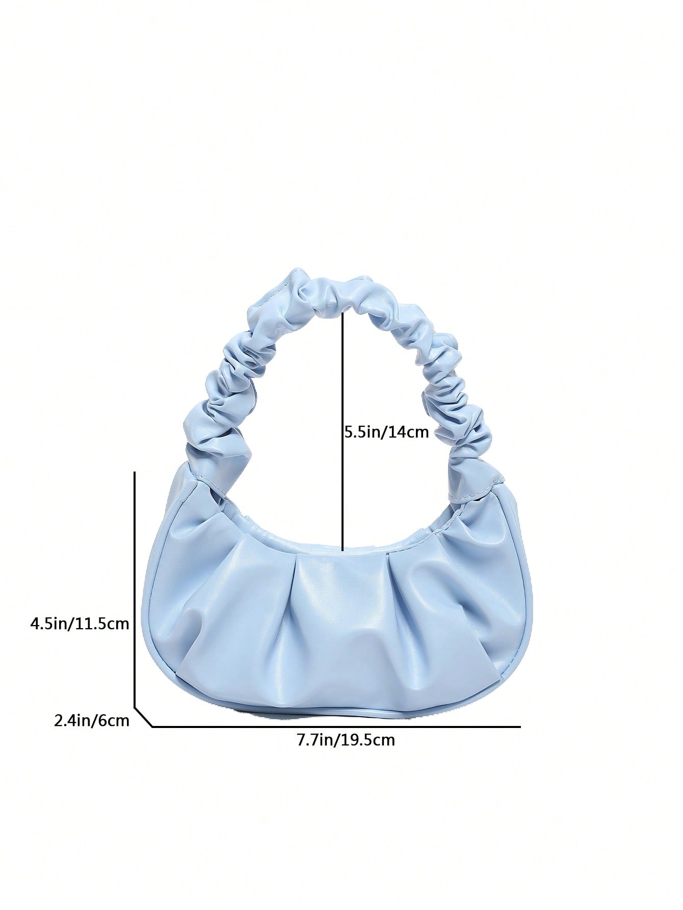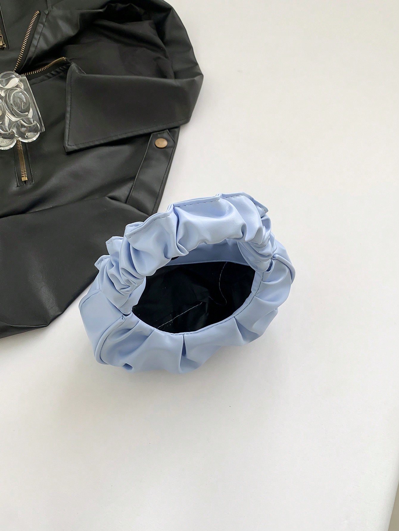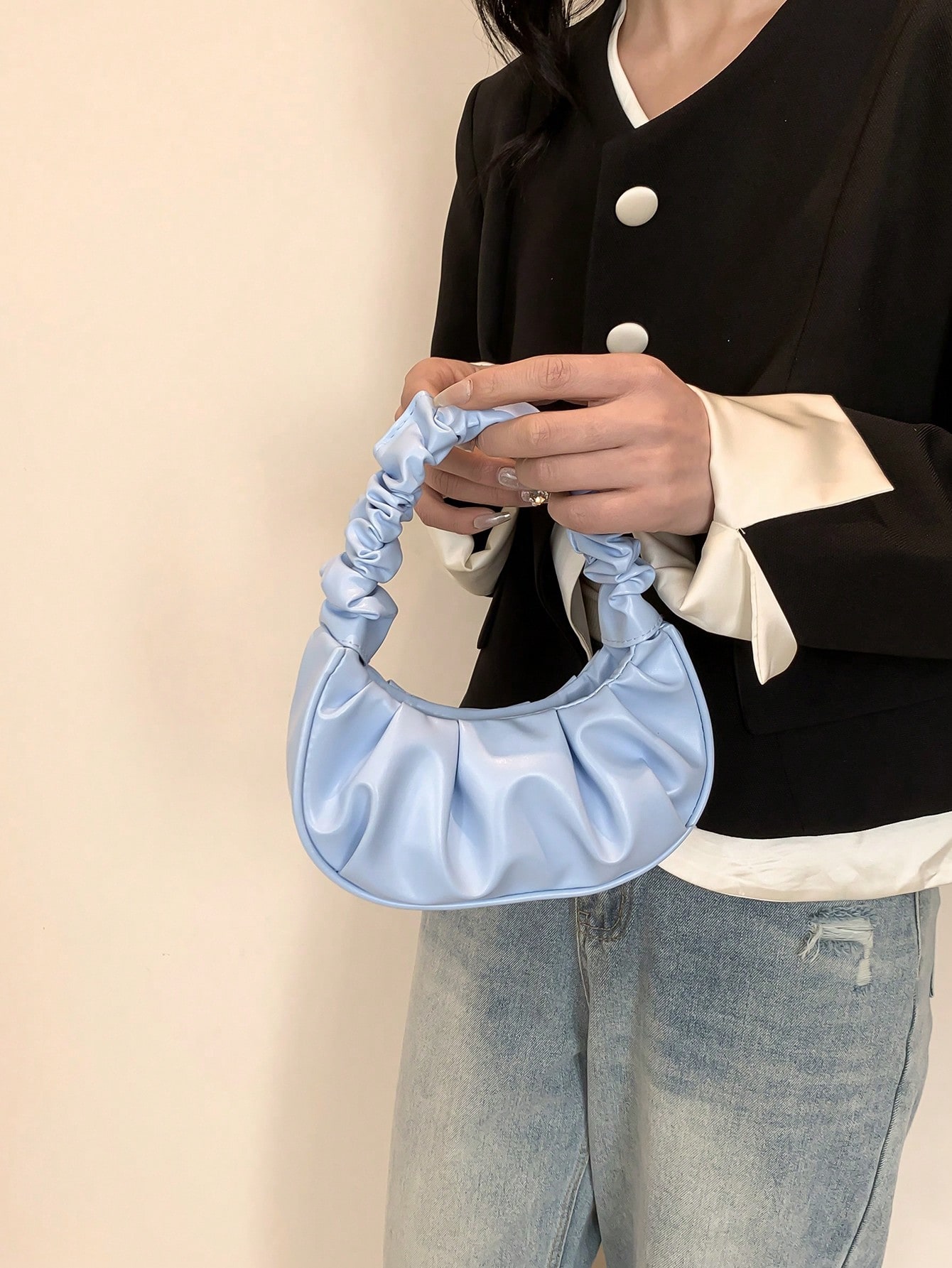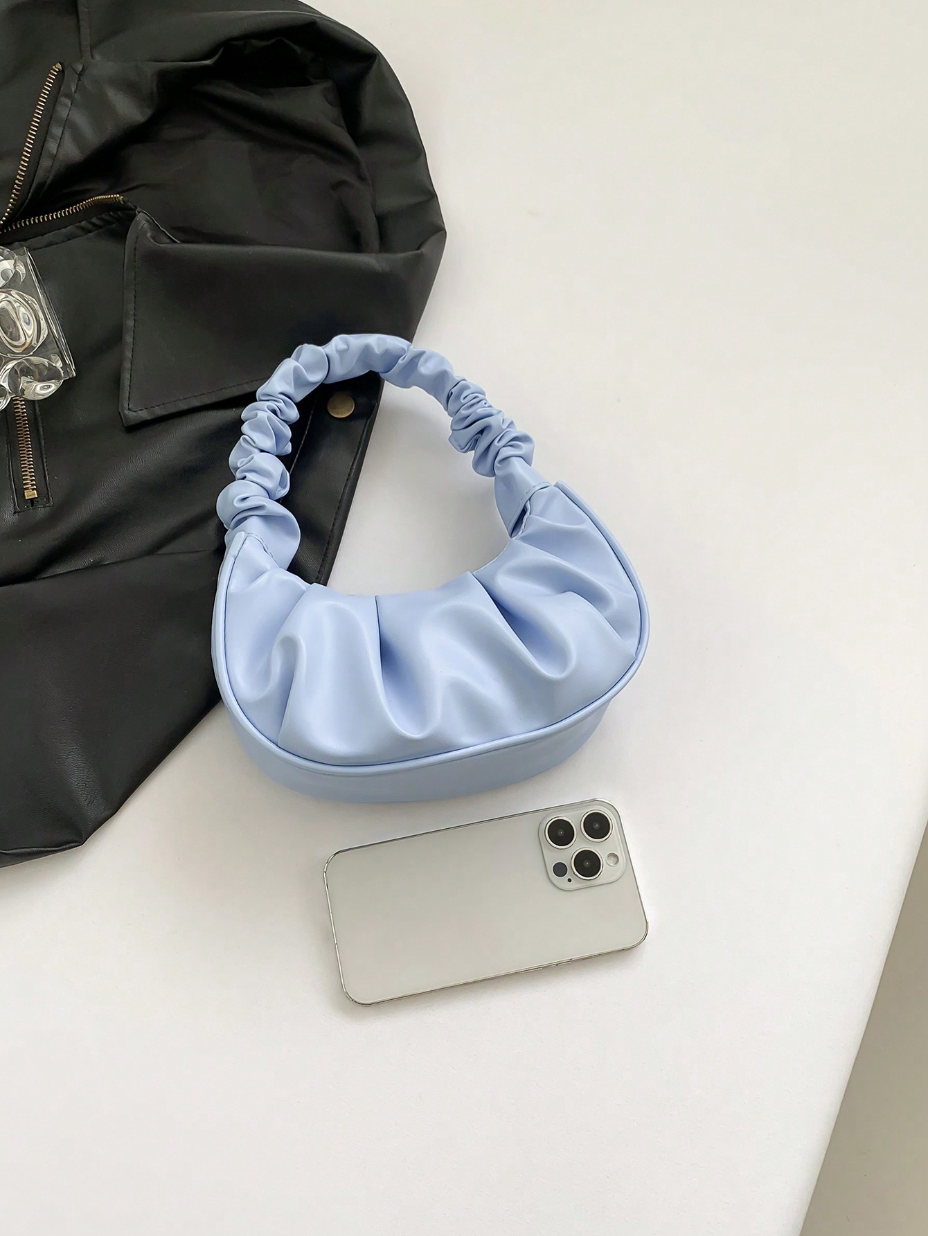 • حقيبة نسائية عصرية بلون أزرق باستيلي ناعم، بتصميم مميز بمقبض مطوي أنيق.
