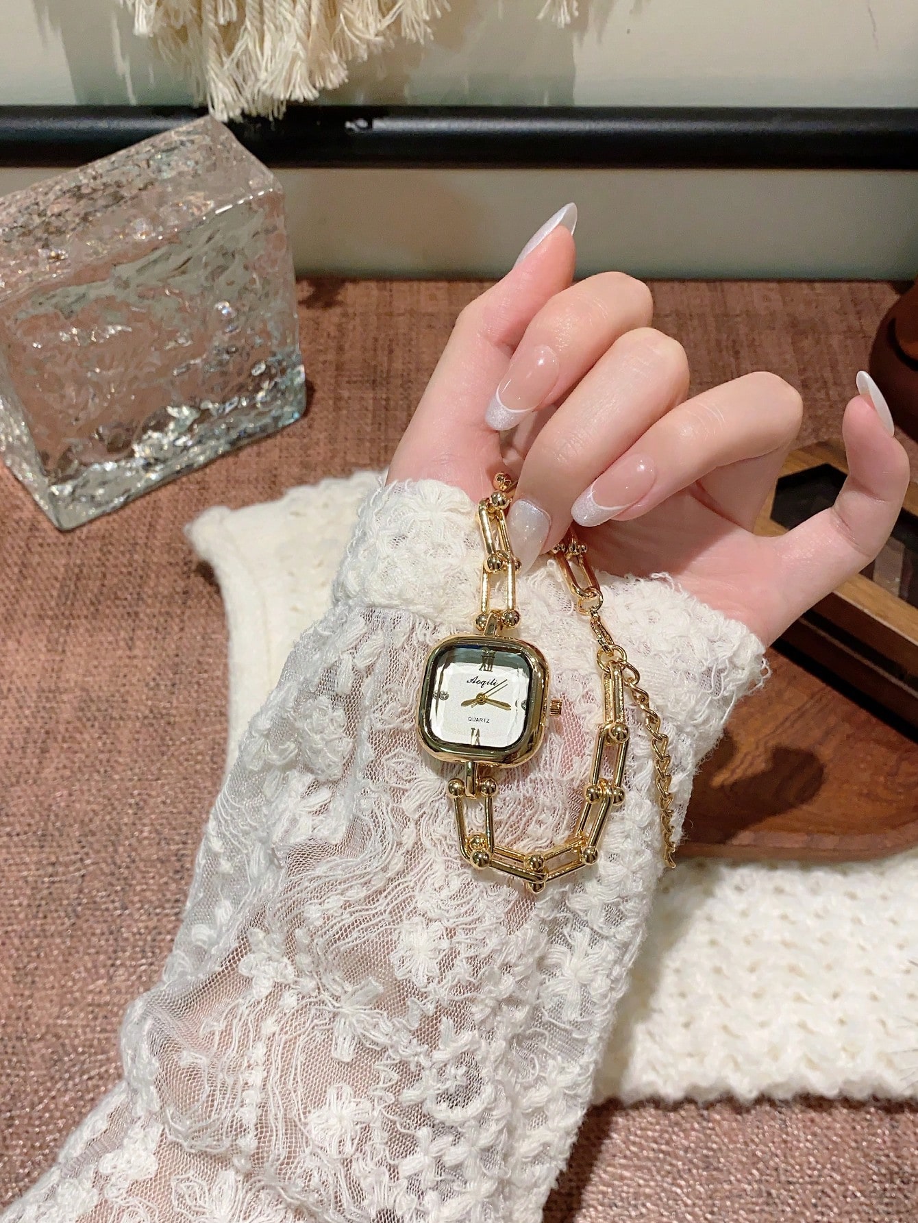 - الاسم: ساعة يد نسائية بإطار مربع.