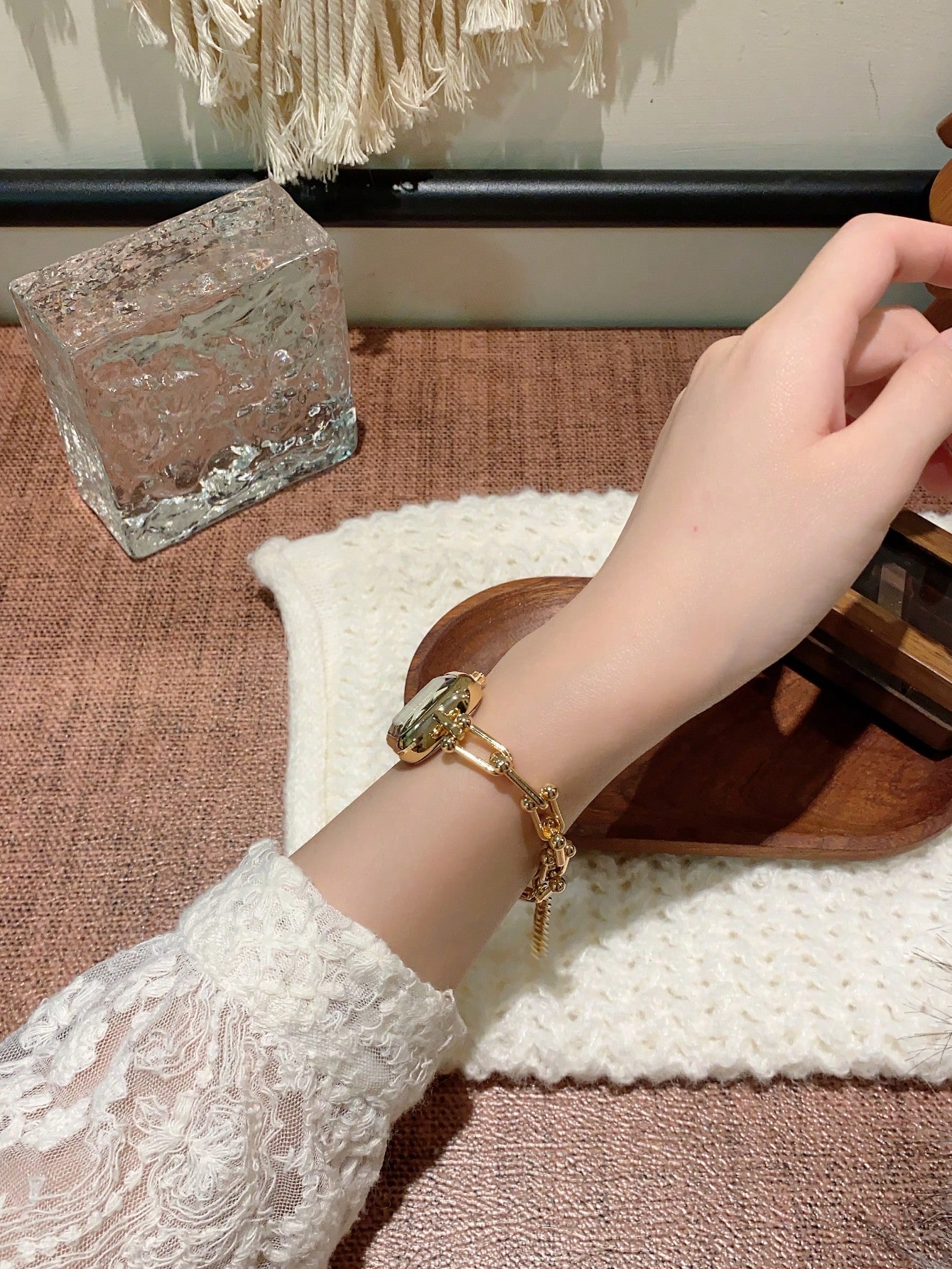 - السوار المعدني الذهبي يمنح راحة عالية أثناء الارتداء اليومي.