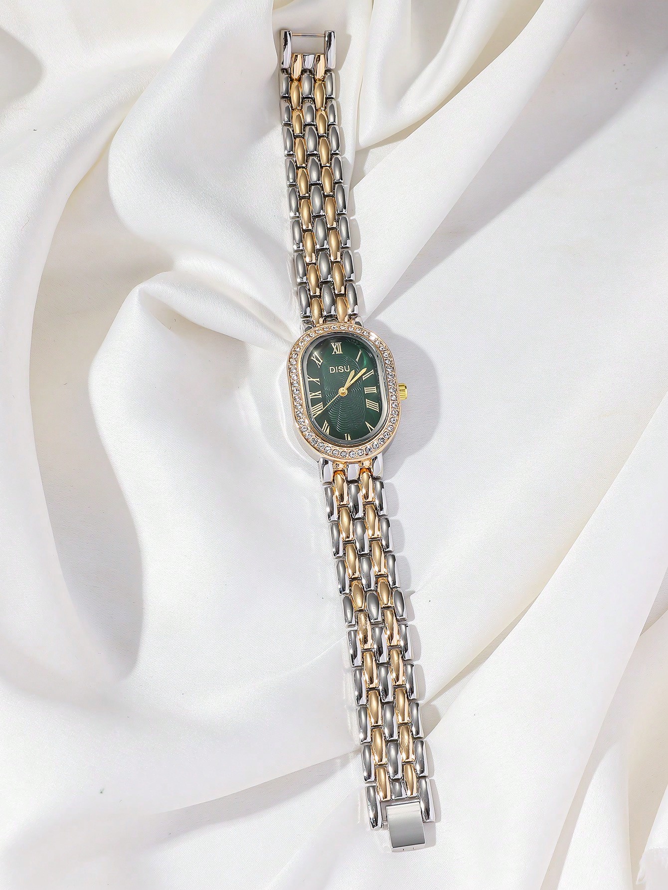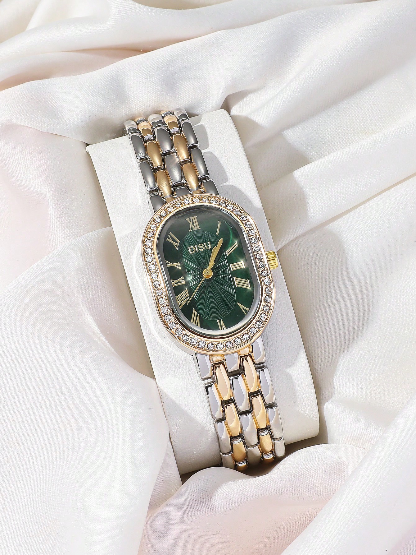 تألقي بإطلالة أنيقة واحترافية مع ساعة اليد النسائية DISU المصممة بإطار بيضاوي فاخر من الستانلس ستيل المطلي بلونين، والمزينة بأحجار الراين البراقة إنها ساعة تجمع بين العملية والفخامة، لتناسبك في العمل، الاجتماعات، أو حتى الاستخدام اليومي.